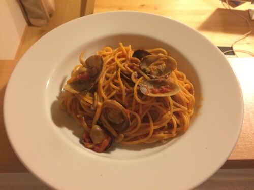 今日は夕飯を作りました。ボンゴレロッソです。あさりトマトソースパスタとでもいいましょうか。イタリア語で、ボンゴレがあさりで、ロッソが赤かと。 レシピ <材料> あさり 1パック しめじ 一房 トマト缶 1缶 パスタ 人数分 にんにく ひとかけ 白ワイン…